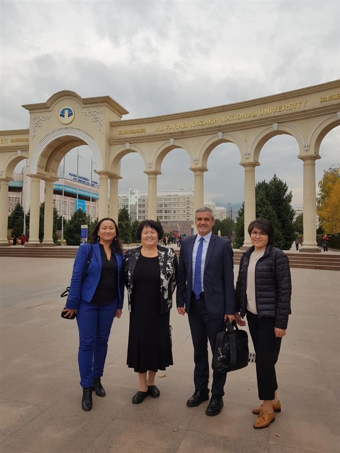 Кот-д-Азур университеті (Франция) Технологиялар институтының директоры, Ректордың бизнес-ортамен байланыс жөніндегі кеңесшісі профессор Жан-Кристоф Буас (Jean-Christophe Boisse) Әл-Фараби атындағы ҚазҰУ-ға Erasmus+ «Жаңа әлеуметтік орта талаптарына сәйкес жоғары білім беру жүйесі мен корпоративтік сектордың интеграциясын күшейту – ENINEDU» жобасы бойынша ішкі аудит жүргізу мақсатында арнайы келді. Мониторинг барысында профессор Буас жобаның ҚазҰУ-да жүзеге асырылуы барысымен танысып, жұмыс тобының бірнеше жиналысына қатысты. Факультет және университет басшылығымен кездесті. Сондай-ақ, ЭжБЖМ Бизнес-құзыреттерді дамыту кластеріндегі жоба аясында ашылған Кәсіпкерлік және инновациялар орталығының жұмысымен танысты.