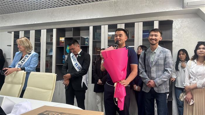 "Bugin holding" ЖШС тең құрылтайшысы (2014 ж.түлегі) Сыдықова Айдана Дәуренқызы құттықтау сөз сөйлеп, студенттерге стипендиялар, сүйікті оқытущыларына естелік кәдесыйлар және "Менеджмент"кафедрасына материалдық субсидиялар берді