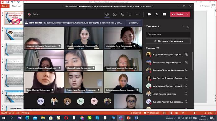 "Біз сыбайлас жемқорлыққа қарсы бейбітшілікті қолдаймыз" тақырыбында НИШ 1-курс студенттеріне слайд көрсетіліп, соңында студенттер осы тақырып бойынша өз ойларын және сыбайлас жемқорлыққа қарсы екендіктерін білдірін пікірлерін айтты.