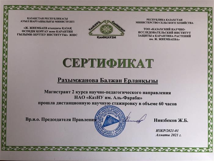 Ж.Жиенбаев атындағы Өсімдіктерді қорғау және карантин ғылыми-зерттеу институты (Онлайн) |
