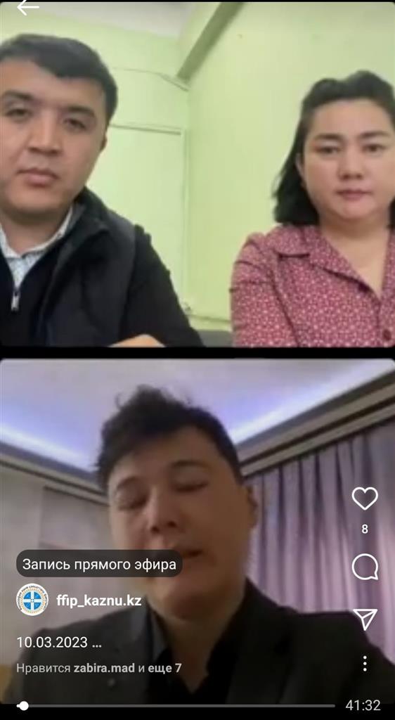 Тікелей сұхбат жазбасы факультеттің Instagram -парақшасында сақталған: https://instagram.com/ffip_kaznu.kz?igshid=YmMyMTA2M2Y=
