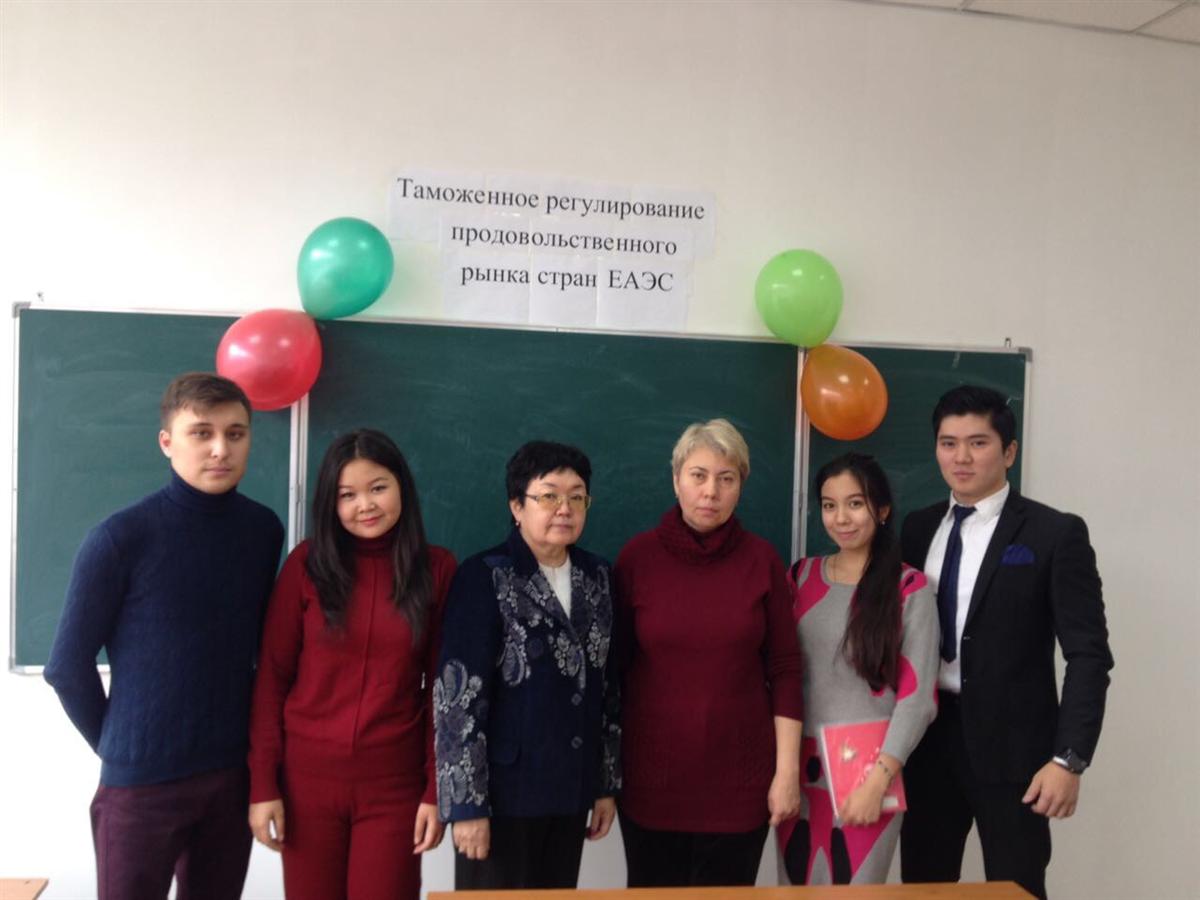 12.12.2017«Айналаңды нұрландыр» жоба аясында, «Еуразиялық Экономикалық Одақ елдерінің азық-түлік нарығының кедендік реттелуі» тақырыбына, «Әлемдік экономика» мамандығының қазақ бөлімінің 1 курс магистранттардың қатысуымен ғылыми семинар өтті.