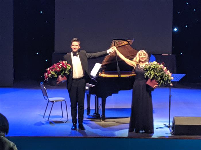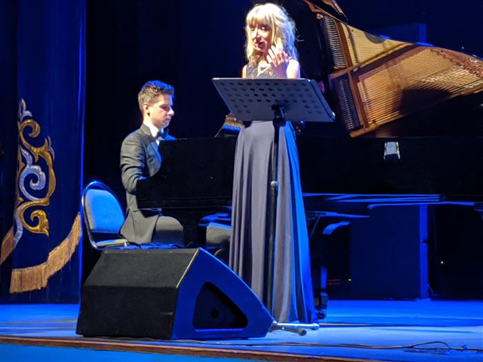 Ұ.Ә. Жолдасбекова атындағы студенттер сарайында Витербодан келген әйгілі музыканттар Мариелла Спадавеккья мен Маттео Бишетти өнер көрсетті.