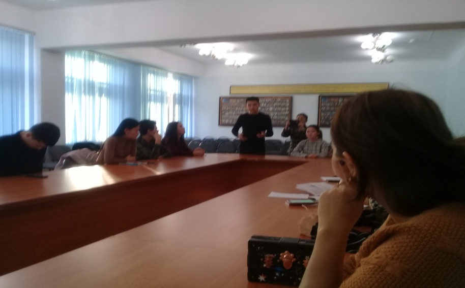 22.10.2018РЭТ мамандығы 1 курс студенттері арасында ҚазҰУ студенттері оқуға тиіс 100 кітап бағыты аясында "соғыс тақырыбында жазылған еңбектер" атты пікірлмасу алаңы ұйымдастырылды. Алаңда студенттер "Ұшқан ұя", "Шығанақ" сынды туындыларды оқып келіп ой бөлісті.