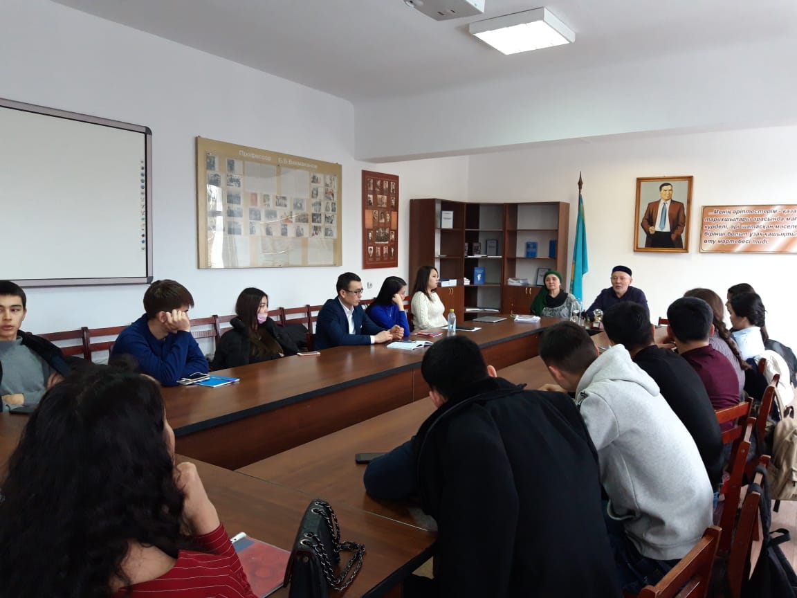 Тарих, археология және этнология факультеті, дүние жүзі тарихы, тарихнама және деректану кафедрасының оқытушыларының ұйымдастыруымен «Діни құндылықтар және радикалды идеологияның зияны» атты тақырыпта әңгіме-сұхбат өткізілді. Шараның мақсаты -«Рухани жаңғыру» бағдарламасы аясында жастарды ұлттық құндылықтарға тәрбиелеу, діни сауаттылығын арттыру. Сұхбат барысында жастардың дәстүрлі құндылықтар мен дінге деген көзқарасы, пікірі мен ойлары ортаға салынды. Осы тақырыпта өз пікірін білдіріп, тың ойларымен бөліскен басты қонақ – Алматы қаласы әкімдігі қасындағы Діни басқарманың «Шаңырақ» діни кеңес беру, алдын алу және оңалту орталығы жетекшісі, т.ғ.к. М.Мадияров болды. Дөңгелек үстелді ұйымдастырып, жүргізген доцент Қартабаева Е.Т., оқытушы Дюсембекова Ж.К.