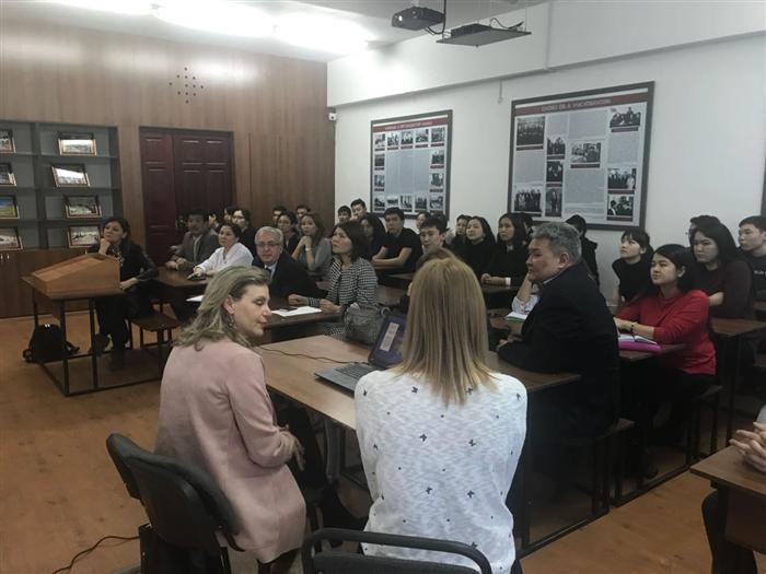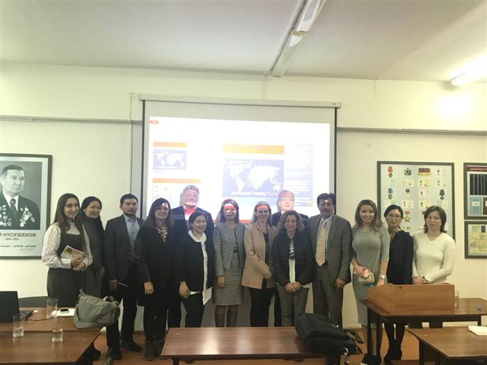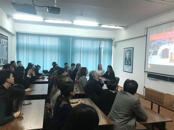 Делегатция студенттер мен оқытушыларға өздері келіп отырған институт туралы, гранттар алу жолдары мен онда оқу, тәжірибеден өту, біліктілікті көтеруге арналған курстар туралы айтып, келушілердің сұрақтарына жауап берді.