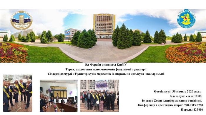 2020 жыл әл-Фараби атындағы Қазақ ұлттық университеті, Тарих, археология және этнология факультеті үшін ерекше жыл. Ұлы ғұлама әл-Фарабидің 1150 жылдық мерейтойы аясында факультетімізде ғылыми, оқу-тәрбие ісі саласында түрлі іс-шаралар жүзеге асырылуда. Соның бірі де бірегейі университетімізде жыл сайын дәстүрлі түрде өткізілетін мереке - ҚазҰУ түлектері күні. Бұл мереке жыл сайын мамыр айының соңғы сенбісі аталып өткізіледі. Ағымдағы жылы әлемде және елімізде орын алған эпидемиологиялық жағдайға байланысты, Түлектер күнін 30-мамыр күні жаңа форматта-онлайн режимде өткізу жоспарланып отыр.