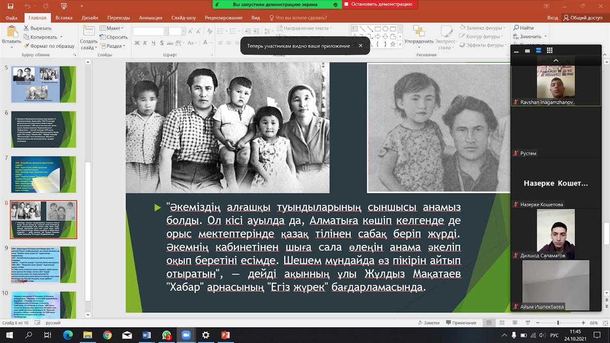 18.10.2021География және табиғатты пайдалану факультетінде 18 қазан күні "табиғи-техногендік тәуекелдер" және "Геоинформатика" мамандықтарының 1 курс студенттерімен ZOOM платформасы арқылы оффлайн форматта Мұқағали Мақатаевтың туғанына 90 жыл толуына орай ашық сабақ өткізілді.
