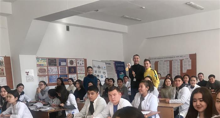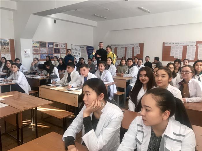 «Қоғамдық денсаулық сақтау» мамандығының студенттерінің Жазғы Жастар Олимпиадасында «алтын» жеңіп алған Глеб Брусенскиймен кездесуі.