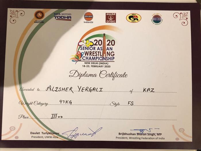 21 ақпан 2020 жылы Нью-Дели қаласында (Үндістан) еркін күрестен ересектер арасындағы Азия чемпионаты аяқталды. Дене шынықтыру және спорт кафедрасының 4 курс студенті Ерғали Әлішер осы жарыстарда 97 келі салмақ дәрежесінде қола медаль жеңіп алды. Еске салсақ, ол 2020 жылғы Олимпиадаға қатысу лицензиясын жеңіп алған болатын.