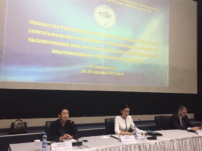 «ҚР дін саласындағы мемлекеттік саясаттың негізгі бағыттары» тақырыбы бойынша мемлекеттік қызметкерлер мен «Дінтану» және «Исламтану» пәндерінің оқытушыларына арналған 2017 жылдың 20-24 қарашасы аралығында болып өткен оқыту семинарында дінтану және мәдениеттану кафедрасының профессоры Байтенова Нағима Жаулыбайқызы шақыртылған дәріскер болды.