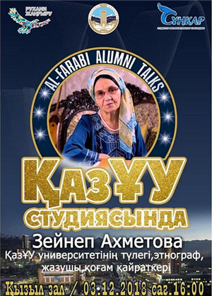 | Айналаңды нұрландыр жобасы аясында жазушы Зейнеп Ахметовамен кездесу | 3.12.2018 | 2018 жылы 3 желтоқсанда математика және механика факультетінің Қызыл залында ақпараттық технологиялар факультеті мен «Сұңқар» ұйымдастыруымен жазушы Зейнеп Ахметовамен кездесу өтті. | ![]() |