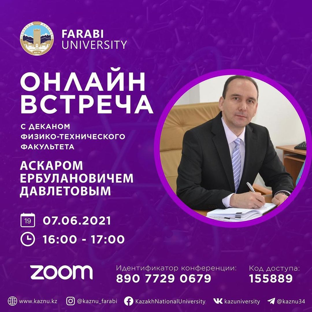 23.11.20212021 жылдың 26-қараша күні сағат 10.00 жылуфизика және техникалық физика кафедрасының доценті, ұлағатты ұстаз Ж.Ө. Өмірбековтың туғанына 80 жылдық мерей тойына және Қазақстан Республикасының тәуелсіздігінің 30 жылдығына орай жылсайынғы физика пәні бойынша Республикалық олимпиада оффлайн форматта өткізіледі.