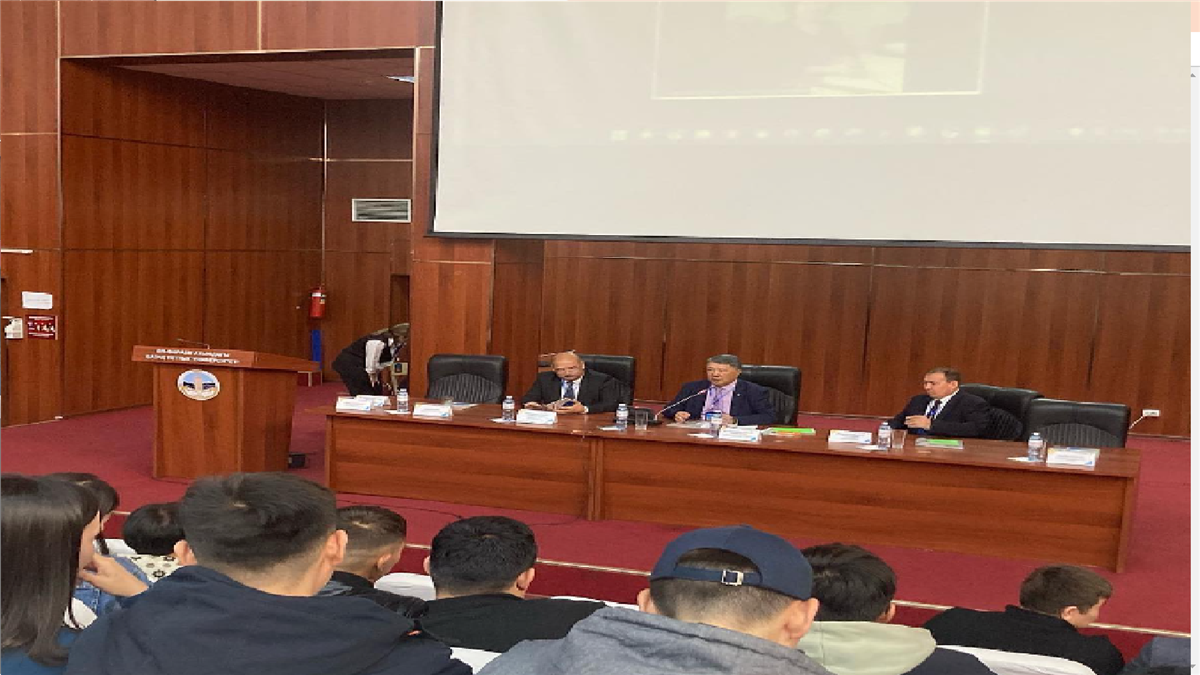 21.10.2022Республика күніне орай Ө.А.Жолдасбеков атындағы студенттер сарайында университет ректоры Жансейіт Қансейітұлы Түймебаевпен кездесу өтуде.