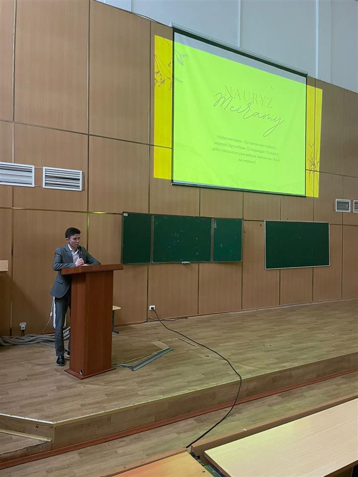 Тұрақты даму мақсаттарына арналған танымдық шарада студенттер Ұлыстың ұлы күні туралы ақпарат айтып, қазақтың әдет-ғұрыптары, ұлттық тағамдары, ойындары туралы мағлұмат берді. Сонымен қатар, шара аясында оқушылар Наурыз мейрамы туралы өлеңдер оқып, қазақтың ұлттық ойыны «Арқан тартыс» ұйымдастырды, домбырамен қазақтың күйлерін ойнады.