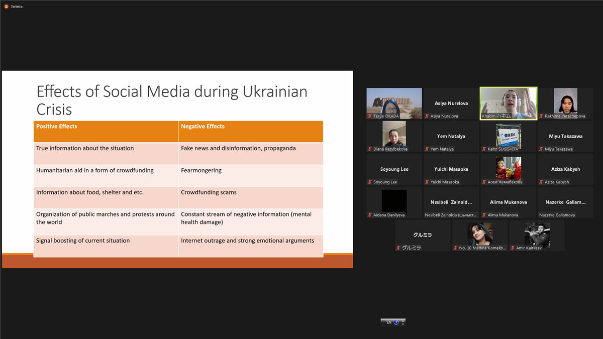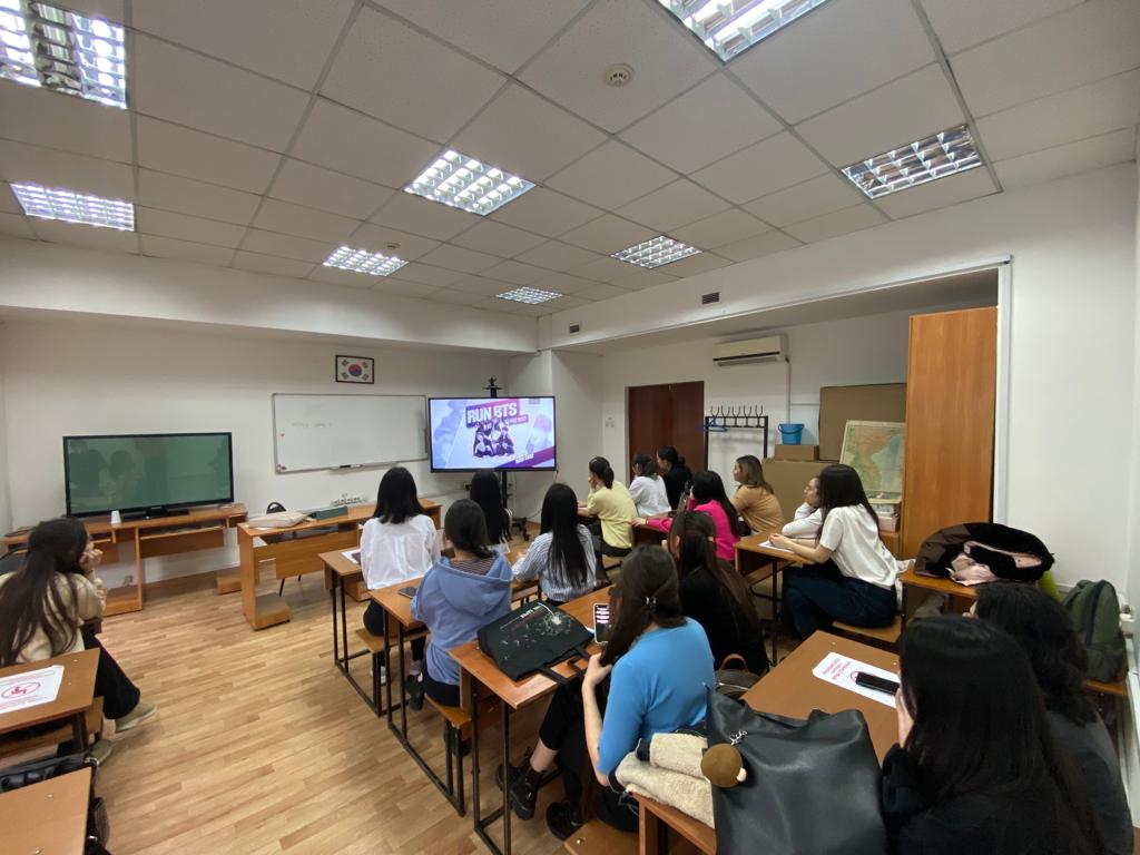 Дүйсенбі, 14 наурыз, “Корейтану апталығының” ашылуына орай, 1-2 курс студенттерінің арасында “Мен және Корея” атты викторина өтті. 1-2 курс студенттері жеребе бойынша “Тэгу”, “Бом”, “Йорым” және “Сагуа” деп аталатын 4 топқа бөлініп, өзара сайысқа түсті. Сайыс барлығы үш кезеңнен тұрды. Бірінші кезеңде студенттер танымал корей телехикаялары мен фильмдеріне қатысты сұрақтарға жауап берсе, екінші кезеңде корей мәдениеті мен тарихына қатысты тапсырмалар орындады. Шешуші, үшінші кезеңде әлем жастарының ыстық ықыласына ие болған К-ПОП әртістері мен әндеріне қатысты сұрақтарға жауап берді. Нәтижесінде 104 балл жинап, озық шыққан “Йорым” тобы жеңіске жетті. Сайысқа қатысқан және ұйымдастыруға қатысқан барлық студенттерге сыйлықтар табысталды.