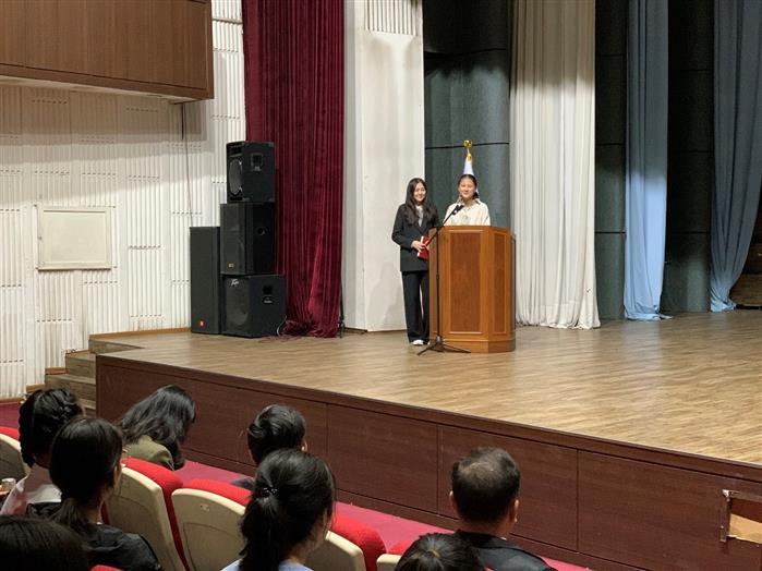 Кездесудің басты тақырыбы «Корея. Мәдениет, тарих және білім» болды. Іс шараның шымылдығын «6В02207- Шығыстану» мамандығының 2 курс студенттері Болат Альбина және Омарова Шырын ашты. Студенттер Корея туралы әсерлерімен бөлісіп, қорей бөлімін таңдап, түсу себептерін айтты. Абылайхан атындағы ХҚжӘТУ студенттері КазУМОиМЯ кәрістермен бірлесіп істеген еріктілер жұмыстарындағы алған әсерлерімен бөлісті. Біздің студенттерден кейін бас консулы Пак Нэчхон сөз алып, Солтүстік Кореямен бірігу тақырыбын қозғап, Токто аралының шиеленісіп тұрған сұрақтарын көтерді. Қорытынды сөз Корея Республикасының елшілігінің қарамағындағы оқу орталығының директоры Ким Тхэ Хван алып, Кореяда оқуға арналған әр түрлі гранттар мен бағдарламалар және оларға қойылытын талаптар мен Корея университеттеріне түсу жолдарымен таныстырды.