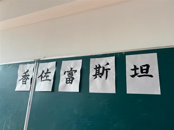 Студенттер де каллиграфияға арналған бояу мен қылқаламды қолданып, түрлі иероглифтерді каллиграфия тәртібімен жазып көрді.