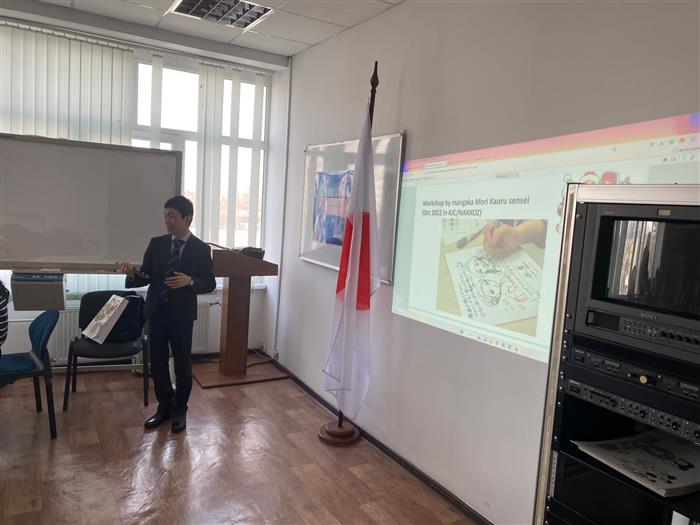 Қазақстандағы Жапония елшілігінің бірінші хатшысы, мәдениет және ақпарат бөлімінің басшысы Юя Киношита мырза Шығыстану факультеті Қиыр Шығыс кафедрасының жапонтану бөліміне арнайы келіп, кездесу өткізді. Кездесуге бөлім оқытушылары, магистранттар мен студенттер қатысты. Киношита мырза кездесу барысында Жапониядағы оқу жүйесі, Жапонияға баруға арналған арнайы бағдарламалар мен қоса MEXT шәкіртақысына қатысты бірнеше бағдарламаны таныстырып, кездесуге қатысушылардың түрлі сұрақтарына жауап берді.