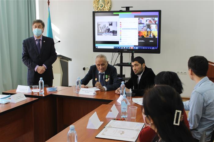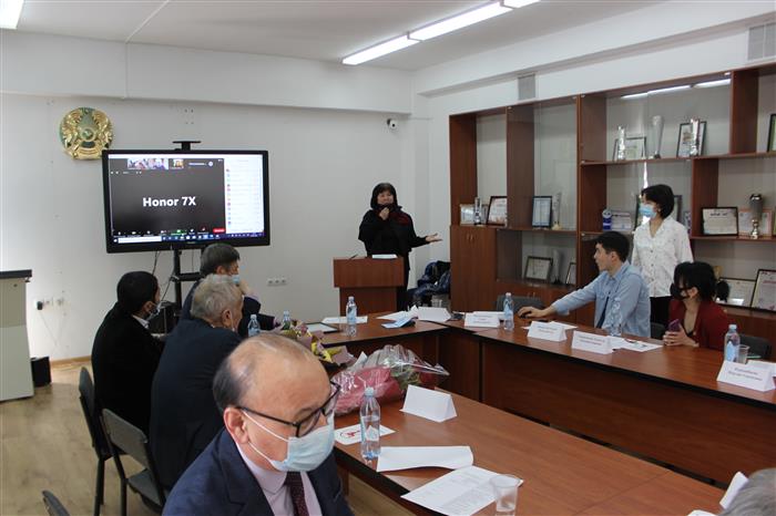 Дөңгелек үстелді биофизика, биомедицина және нейроғылымдар кафедрасының жетекшісі б.ғ.к., профессор Кустубаева Альмира Мэлсовна ашып, келген қонақтарға алғыс білдіріп, профессорр В.М. Инюшинің өмір жолы мен еңбегіне тоқталды.