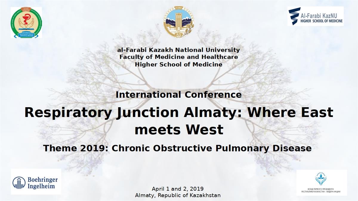02.04.2019Алматы қаласында 1 және 2 сәуірде Әл-Фараби атындағы Қазақ ұлттық университетінің медицина және денсаулық сақтау факультетіне Қазақстан Республикасы Тұңғыш Президентінің Қорының қолдауымен «Respiratory Junction Almaty: Where East meets West» атты халықаралық конференциясы өтті. Іс-шара «VI халықаралық Фараби оқулары» жыл сайынғы форумы аясында өткізілді.