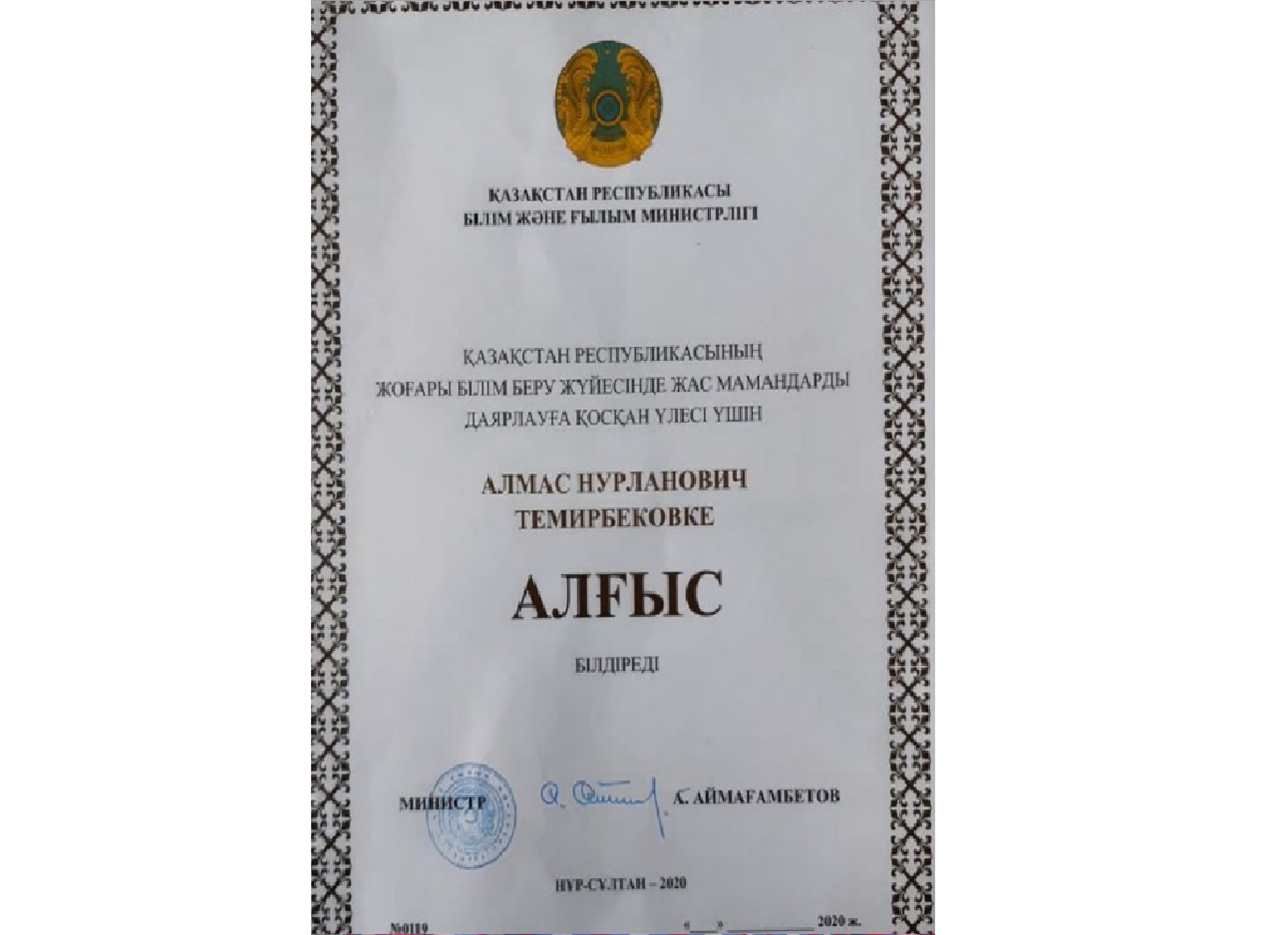 16.02.2021Кафедраның ғылыми семинары аясында «Жоғары реттік белгісіз бейсызық жүйелер үшін ғаламдық практикалық қадағалау және олар үшін бағдарламалық жасақтама құру» тақырыбында философия докторы (PhD) дәрежесіне докторлық диссертация қорғалды. «