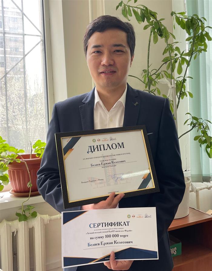 Механика кафедрасының қауымдастырылған профессоры, PhD Беляев Ержан Келесұлы «Әл-Фараби атындағы ҚазҰУ-дың үздік жас ғалымы – 2022» байқауының жеңімпазы атанды.