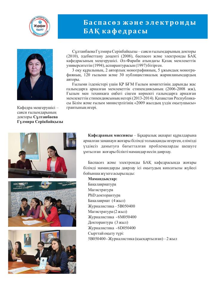 Баспасөз және электронды БАҚ кафедрасы