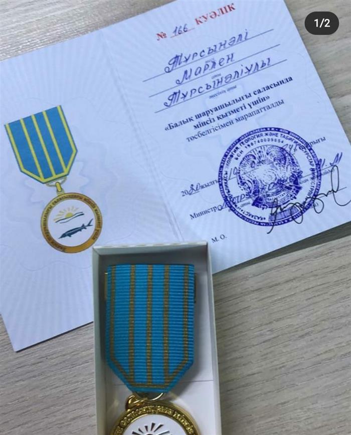 Кафедрамыздың PhD докторанты Тұрсынәлі Марлен Тұрсынәліұлы елімізде балық шаруашылығын дамытуға қосып жатқан үлесі үшін Қазақстан Республикасының "Экология, геология және табиғи ресурстар" министрі Мағзұм Маратұлы Мырзағалиевтің бұйрығымен, " Балық шаруашылығы саласында мінсіз қызметі үшін" атты төсбелгісімен марапатталды. Жасап жатқан еңбегіңіз толағай табыстарға толы болсын.