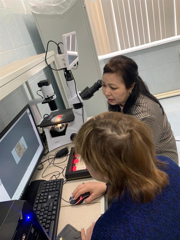 «Абиотикалық стресс факторларының бейімделудің морфофизиологиялық және фитохимиялық аспектілеріне Қазақстандық Rhodiola semenowii Boriss өсімдігінің биологиялық белсенділігі мен бейімделуіне әсері» жобасы аясында РМК ШЖК " Биобақылау, сертификациялау және клиника алды сынамалар жүргізетін орталық зертханасы User manual MX 700 (T) инвентирленген микроскоп сатып алды. Бұл микроском ғылым саласында жұмыс жасайтын барлық мамандарға зор мүмкіндік береді. Жоба жетекшісі әрі биоалуантүрлілік мен биоресурстар кафедрасының доценті, Нина Владимировна Терлецкая. Зертханаға биоалуантүрлілік және биоресурстар кафедрасының меңгерушісі Меруерт Сакеновна Құрманбаева келіп, докторанттарға өсімдіктерден дайындалған гистологиялық препараттарды сипаттауды үйретіп, өз тәжірибесімен бөлісті. Осындай біздің жұмыс берушілеріміздің арқасында ғылымда жүрген жас мамандарымыз докторанттар мен магистранттардың жаңа әдістер мен тәсілдерді меңгеріп, өнімді жұмыс жасауында үмітіміз зор!