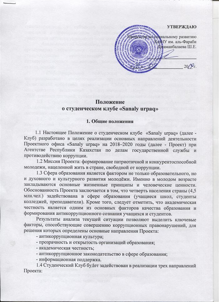 «SANALY URPAQ» студенттік клубының Ережесі
