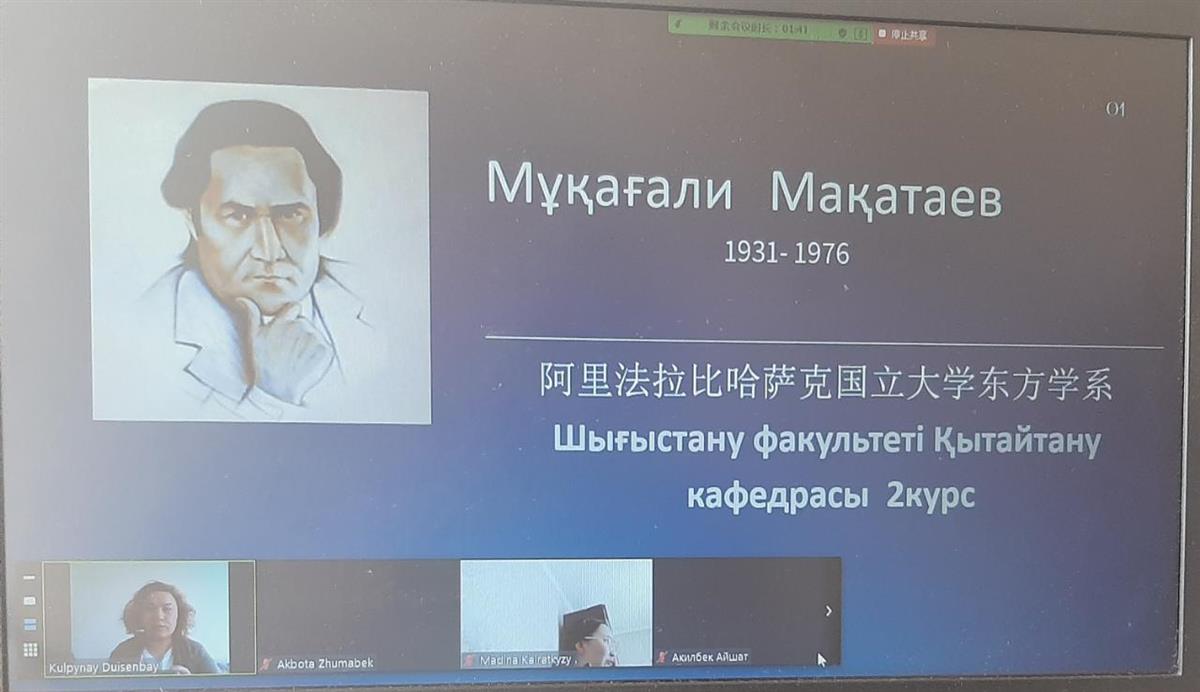 18.02.2021Биыл 9 ақпанда қазақтың ақиық ақыны Мұқағали Мақатаевтың (1931–1976) туғанына 90 жыл толып отыр. Атаулы күнге орай әл-Фараби атындағы Қазақ ұлттық университеті шығыстану факультеті қытайтану кафедрасында кураторлық сағат өтті.