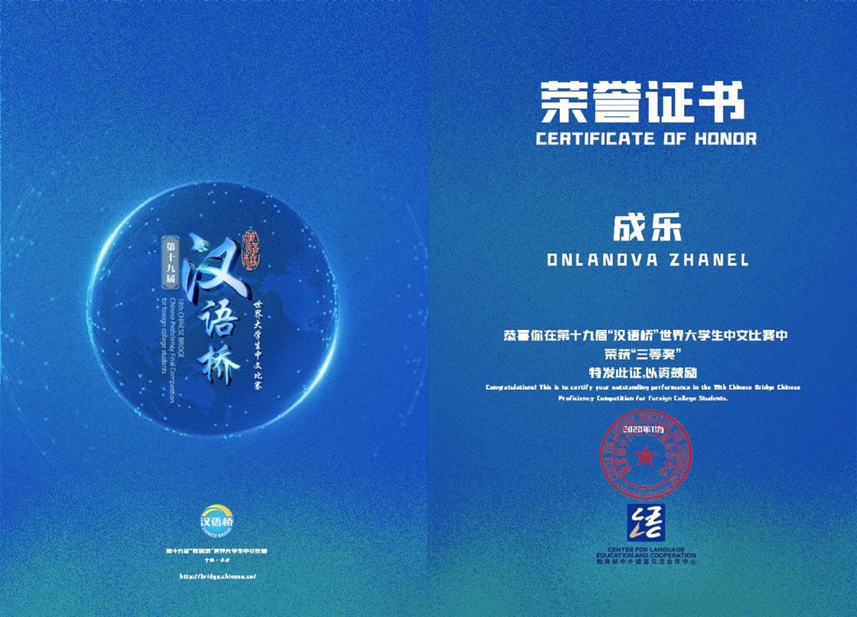 әл-Фараби атындағы Қазақ ұлттық университеті, шығыстану факультетінің студенттері Алматы қаласы бойынша "Қытай тілі көпірі", Республикалық "Қытай тілі көпірі" байқауларында кафедрамыздың оқытушысы Дүйсенбай Құлпынайдың жетекшілігіндегі студенттер ерекше белсенділігімен көзге түсті.