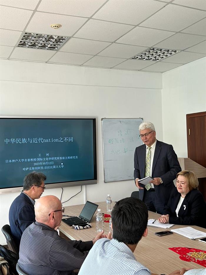 12 қазан күні қытайтану кафедрасында “中华民族与nation 之间区别" тақырыбында дөңгелек үстел өтті. Оған Жапонияда туып-өскен профессор Ваң Кы қатысып, аталған тақырып бойынша баяндама жасады. Профессор дөңгелек үстел барысында Қытайдағы ұлттар мәселесі жөнінде өз ойын ортаға салды. Дөңгелек үстелге кафедраның оқытушы-профессорлары қатысып, пікір алмасты.