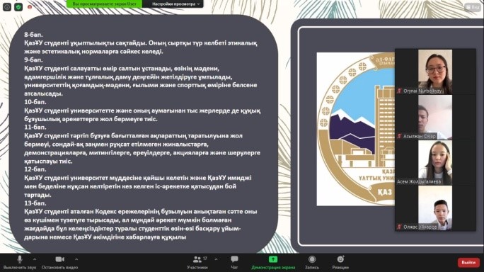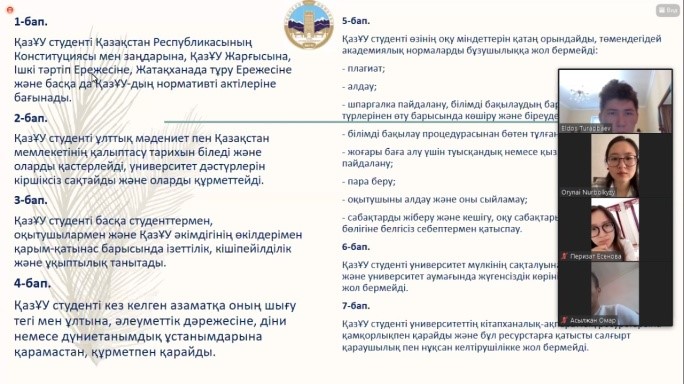 «әл-Фараби атындағы ҚазҰУ-дың академиялық саясаты» және «ҚазҰУ студентінің ар-намыс кодексі»