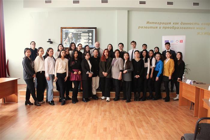 Халықаралық панельдік пікірталас факультет басшылығының, Алматыдағы БҰҰ Жаһандық коммуникациялар департаментінің өкілі – Властимил Самектің және Орталық Азия мен Ауғанстанға арналған "Spotlight Initiative" өңірлік бағдарламасының коммуникациялар жөніндегі үйлестірушісі, БҰҰ ҚӨК – Олеся Журавлеваның қатысуымен өтті.