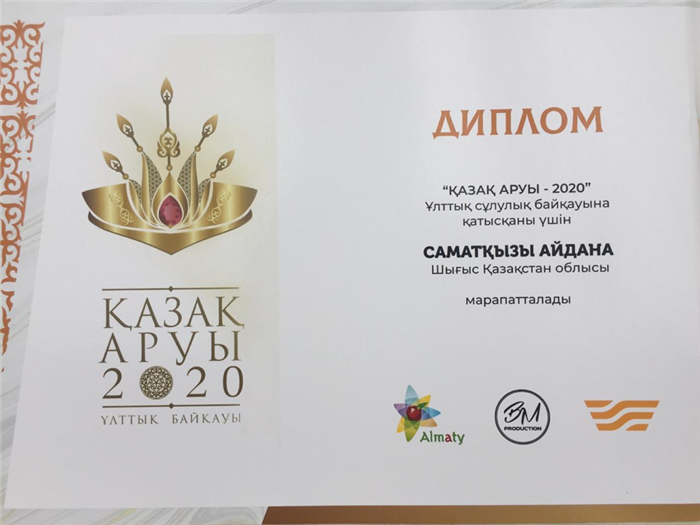 "Қазақ аруы - 2020" сұлулық байқауының қатысушысы СаматқызыАйдана. Айдана кішкентай кезінен ән айтып, іс-шараларды жүргізгендіұнатқан. Алматы қаласындағы Шоқан Уәлиханов атындағымамандандырылған дарынды балаларға арналған гимназияны 2018 жылы үздік бітіріп,Әл-Фараби Атындағы Қазақ Ұлттық университетіне "Туризм"мамандығына оқуға түседі.