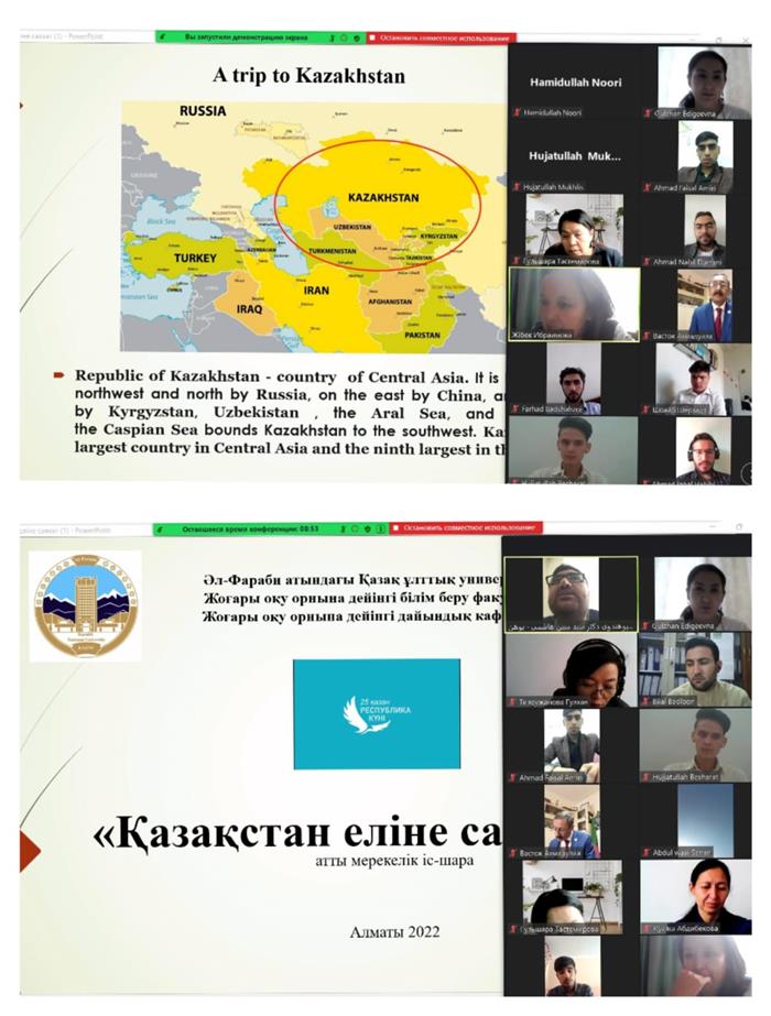 Оның негізгі мақсаты: шетелдік тыңдаушыларға, соның ішінде ауған тыңдаушыларына Қазақстан Республикасы туралы мәлімет беру, қазақ елінің тарихына шолу жасай отырып, таныстыру. Бұл үлкен шараға бірнеше шетелдік қонақтар қатысып, ізгі тілектерін білдірді. Шара кезінде Қазақстан туралы слайд-шоу көрсетіліп, қазақ-ағылшын тілінде баяндалды. «Ариана» ауған орталығының басшысы- Ахмадулла Восток сөз сөйлеп, білім алушыларға жақсы тілектер айтты. Сонымен қатар «Парван» университетінің профессоры Доктор Саид Мобин Хашими барлық тыңдаушыларға жылы лебізін білдіріп, ұстаздарға алғысын айтты. Факультетіміздің түлектері де Қазақстанның ең ірі білім ордасы- Қазақ ұлттық университеті туралы жақсы сөздер айтып, ұстаздарын құттықтады.