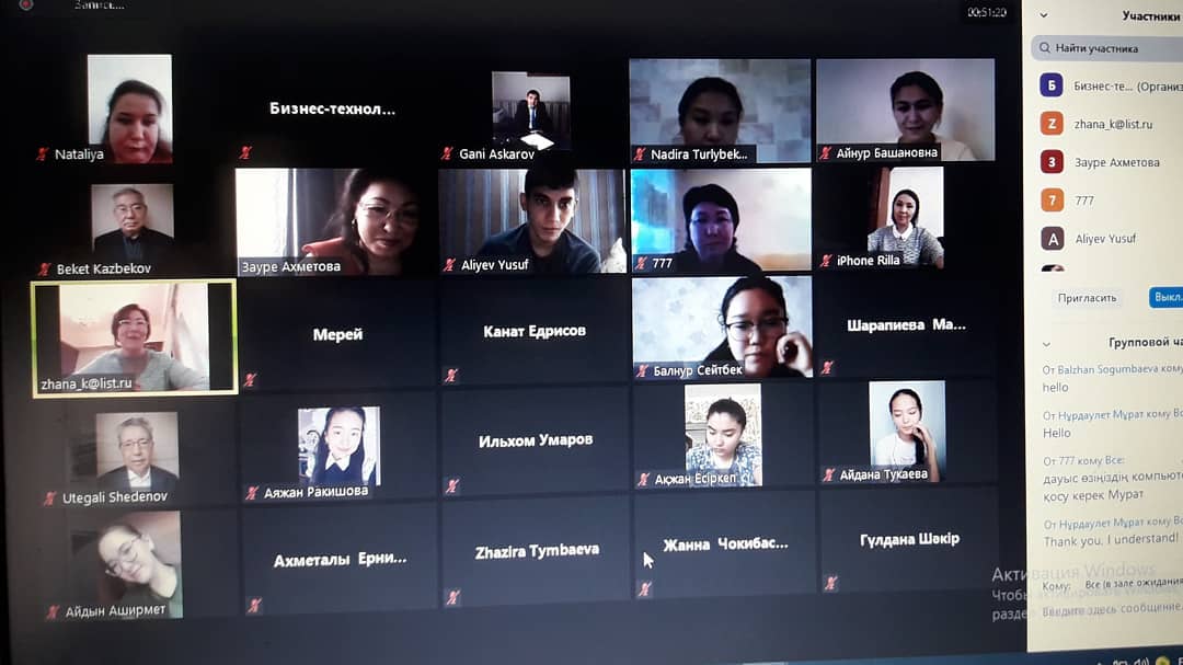 03.09.202003.09.2020 жылы "Бизнес-технологиялар" кафедрасының меңгерушісі э.ғ.к., қауымдастырылған профессоры Ахметова Зауреш Болатханқызы және кафедра ПОҚ қатысуымен "Маркетинг" және "Логистика" мамандықтарының 1-курс студенттеріне кафедраны таныстыру мақсатында онлайн кездесу өтті. Кездесу барысында жылы лебіздер мен тілектер айтылып, қатарымызға жаңа қосылған студенттер қызықтыратын сұрақтарына жауап алды