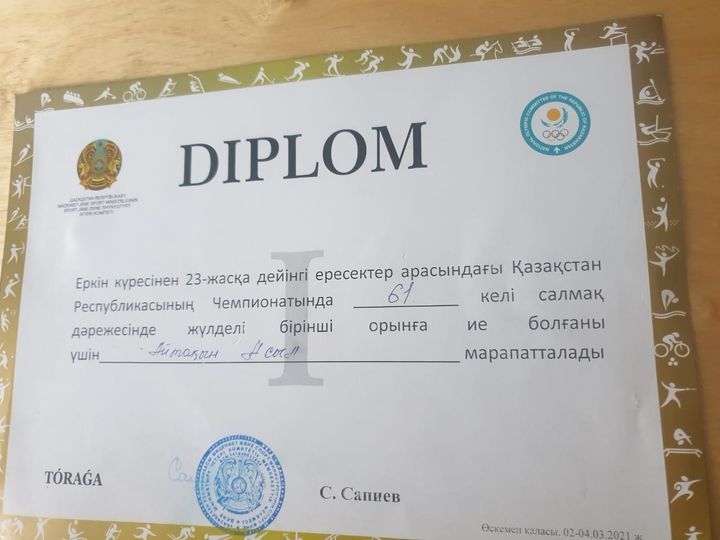 Айтын Асыл, Өскемен қаласында өткен еркін күрестегі жарыстарда, еркін күрестен, 61 келі салмақ дәрежесінде алтын медаль жеңіп алды.