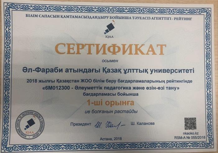 Әлеуметтік педагогика және өзін-өзі тану(БІЛІМ САПАСЫН ҚАМТАМАСЫЗДАНДЫРУ БОЙЫНША ТӘУЕЛСІЗ АГЕНТТІГI 2018)