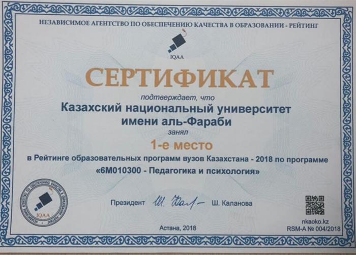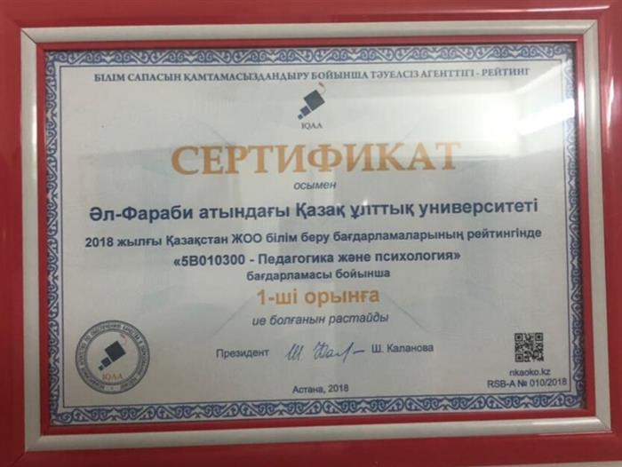 Педагогика және психология(БІЛІМ САПАСЫН ҚАМТАМАСЫЗДАНДЫРУ БОЙЫНША ТӘУЕЛСІЗ АГЕНТТІГI 2018)