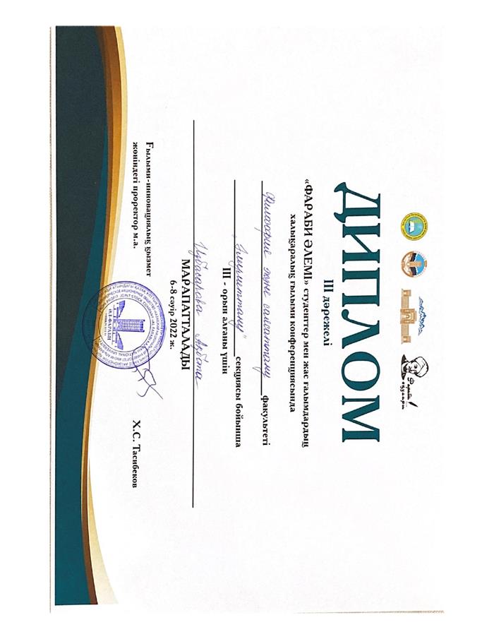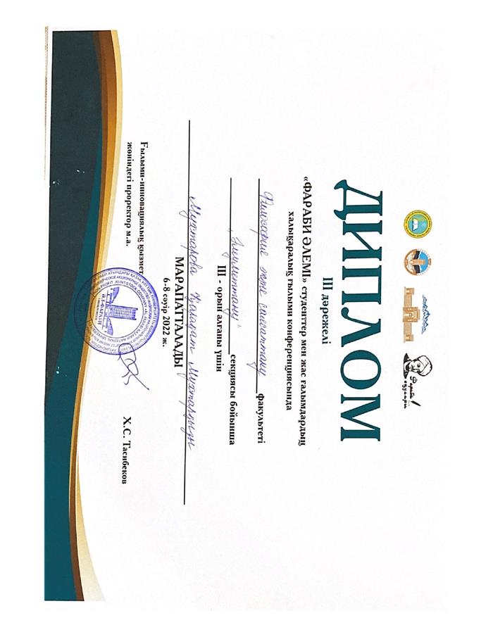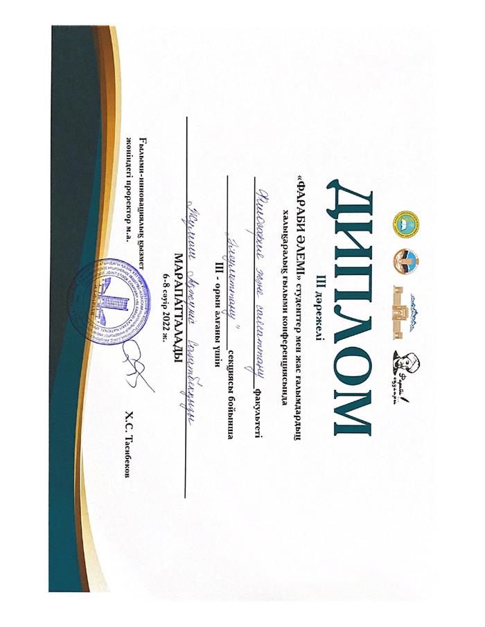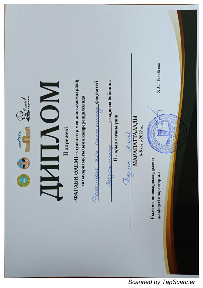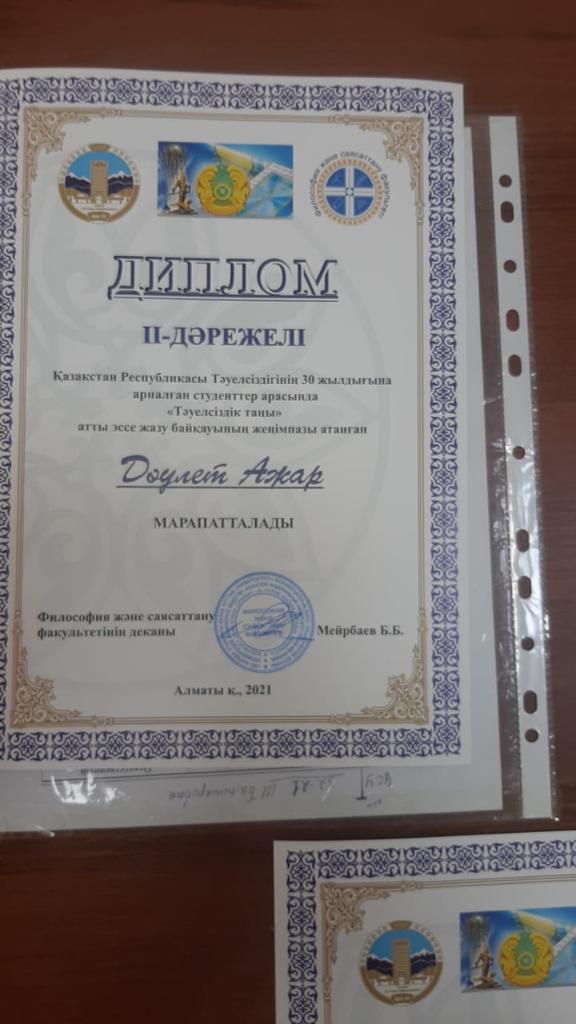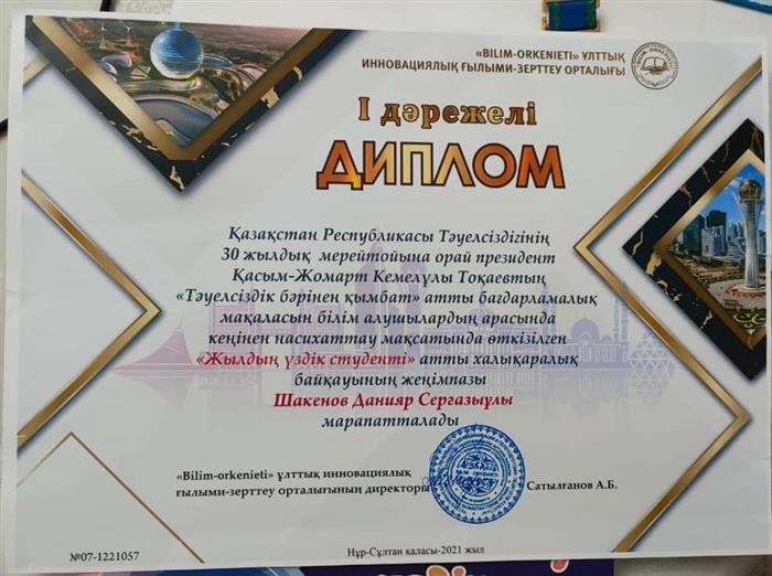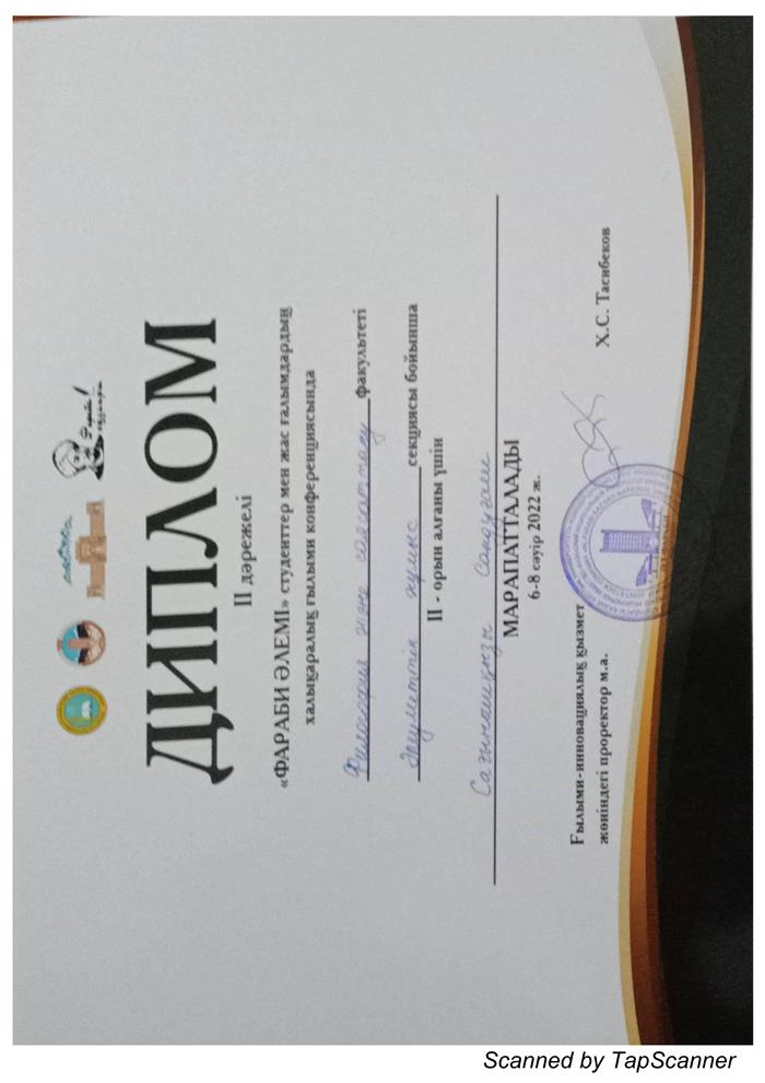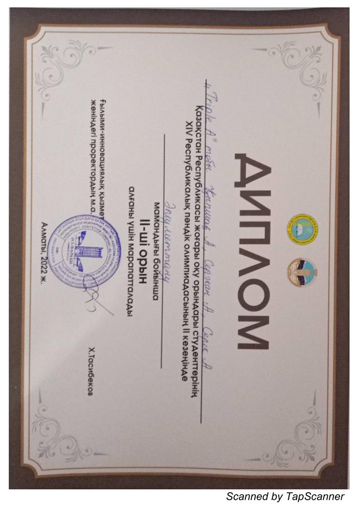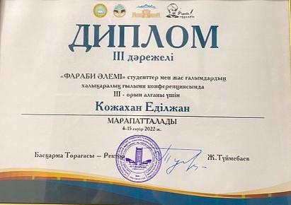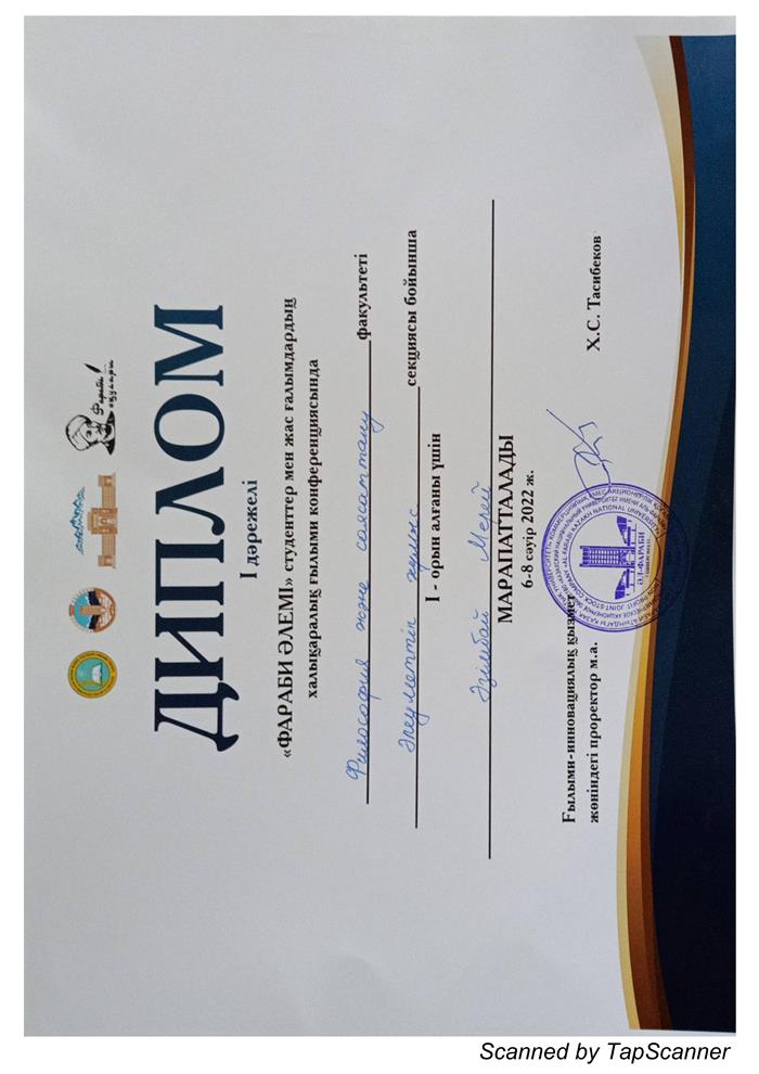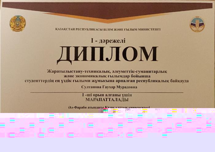 1. Әл-Фараби атындағы Қазақ Ұлттық Университеті – «ОКО» тобы. Ғылыми жетекшісі: Ph.D, аға оқытушы Шабденова А.Б. Құрамы: Жуматанова А., Комиссарова Д., Касымова Ж.