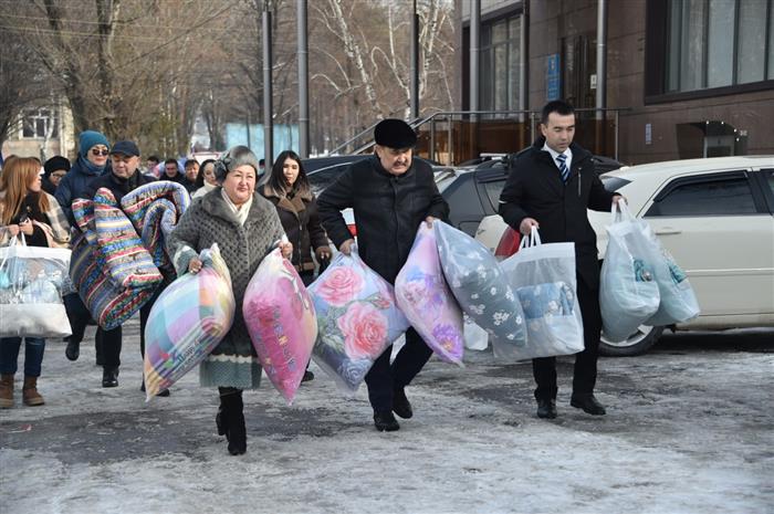 Білім ордасында Ректор Жансейіт Қансейітұлы Түймебаевтың бастамасымен жиналған қаражат 40 млн теңгені құрады. Жәрдем қабылдау пунктінде еріктілер қолдауымен 20 киіз үй, көрпе-жастық, қалың төсеніштер және ересектер мен балалар киімдері жиналды
