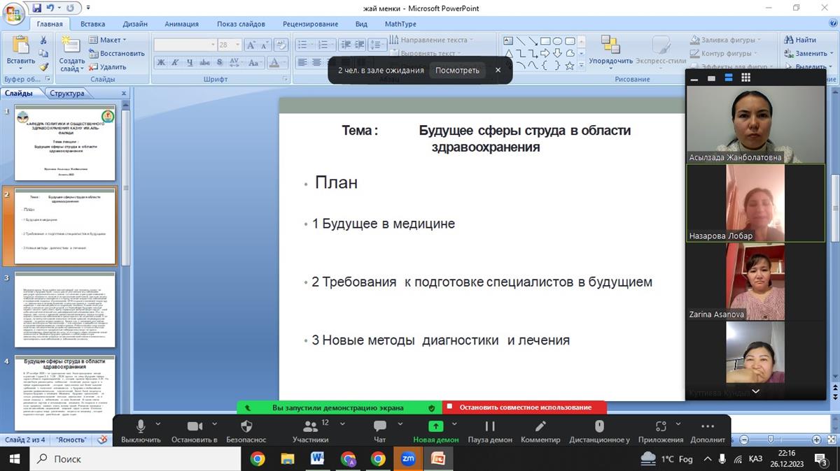 11.11.2023«Эксперттік бағалау методологиясы және сапа сараптамасы» пәні бойынша «Мейіргер ісі» докторанттары арасында тәрбие сағаты өтті. Тәрбие сағатының мақсаты мейіргер ісі мамандарының білімін жоғарылату мен жаңа мейіргерлік инновациялық технологиялармен таныстыру, жұмыс барысында қолданудың тиімділігін түсіндіру.