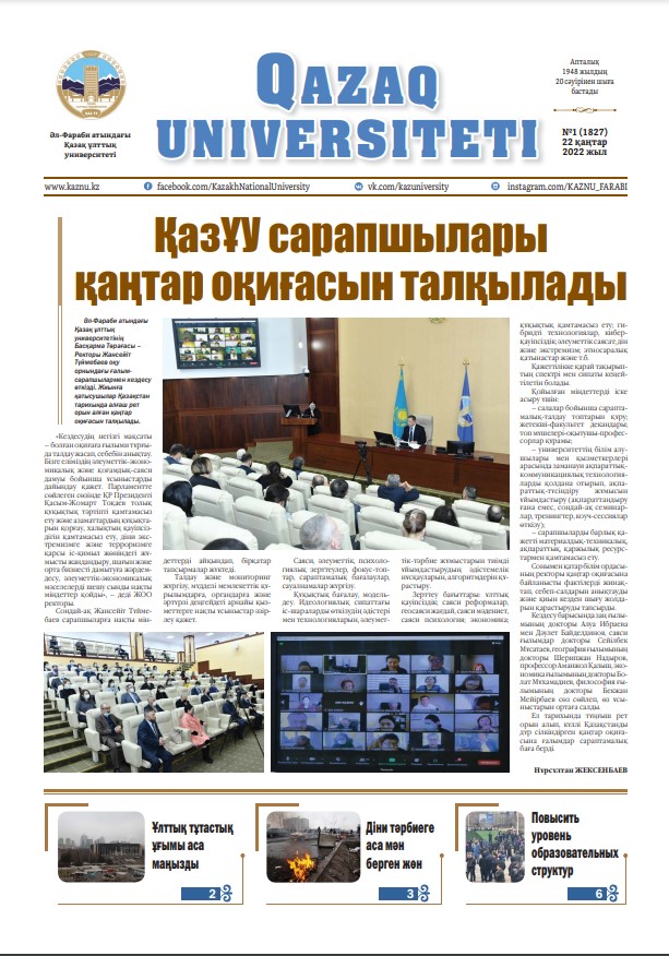 04.02.2022Әл-Фараби атындағы Қазақ ұлттық университетінің Басқарма Төрағасы – Ректоры Жансейіт Түймебаев сарапшылар тобымен кезекті жиын өткізді. Кездесу барысында ректор қаңтарда орын алған қайғылы оқиғаға орай, университеттің ғалымдары мен сарапшылары бірлесіп жұмыс істеу керектігін жеткізді.
