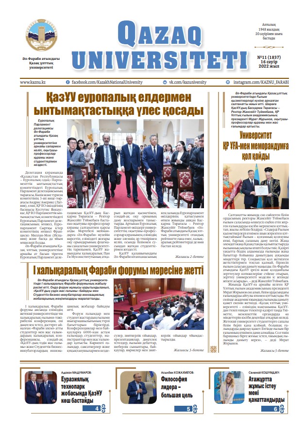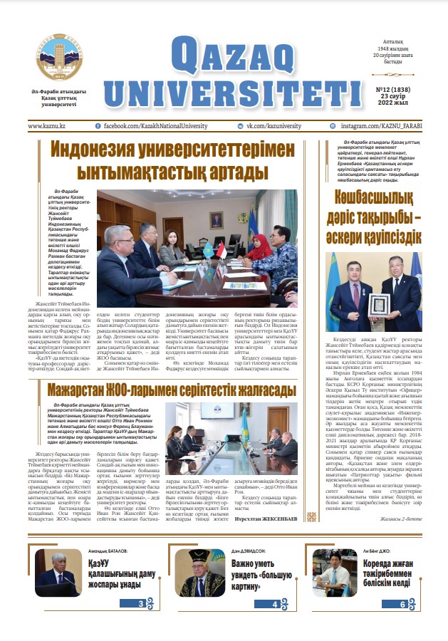 «QAZAQ UNIVERSITETI» ГАЗЕТІНІҢ КЕЗЕКТІ НӨМІРІ ЖАРЫҚ КӨРДІ