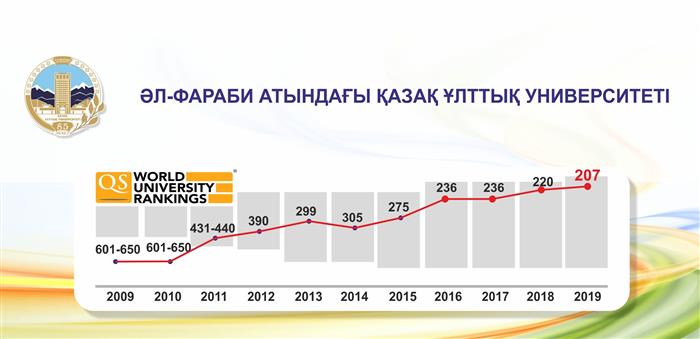 ҚазҰУ еліміздің жетекші университеті ретінде Тұңғыш Президент – Елбасы Нұрсұлтан Назарбев алға қойған әлемнің ең үздік 200 университетінің санатына ену бойынша маңызды мемлекеттік міндетті жүзеге асыру үшін мақсатты түрде жұмыс істеуде. Соңғы бес жылда университет «QS WUR» рейтингінде 400 сатыдан астам белеске көтерілді. Әлемдік тәжірибеде бірде-бір ЖОО мұндай өсу қарқынына кол жеткізген емес! QS сарапшыларының ұсынысы бойынша ҚазҰУ тәжірибесі әлемдегі жетекші университеттерде зерттелуде. Мұндай көрсеткіш білім беру мен ғылымның әлемдік нарығындағы университеттің жоғары бәсекеге қабілеттілігінің дәлелді айғағы.