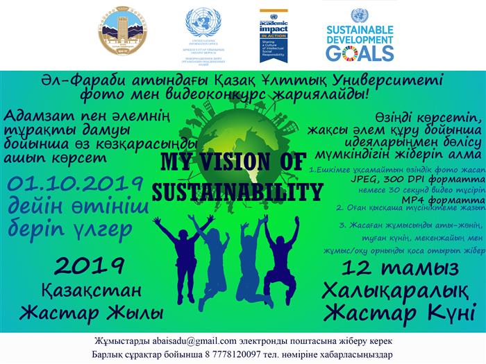 ҚазҰУ-дың Жастар күнін мерекелеу аясында «My vision of Sustainability» фото және бейне бақылауы жарияланды. Конкурстық жұмыстардың тақырыптары БҰҰ-ның кедейлікті жоюға, ғаламшардың ресурстарын сақтауға және әл-ауқатты қамтамасыз етуге, сондай-ақ жастар саясаты мен оның негізгі аспектілеріне бағытталған тұрақты дамудың 17 мақсаттарының бағдарламасына арналуы тиіс.