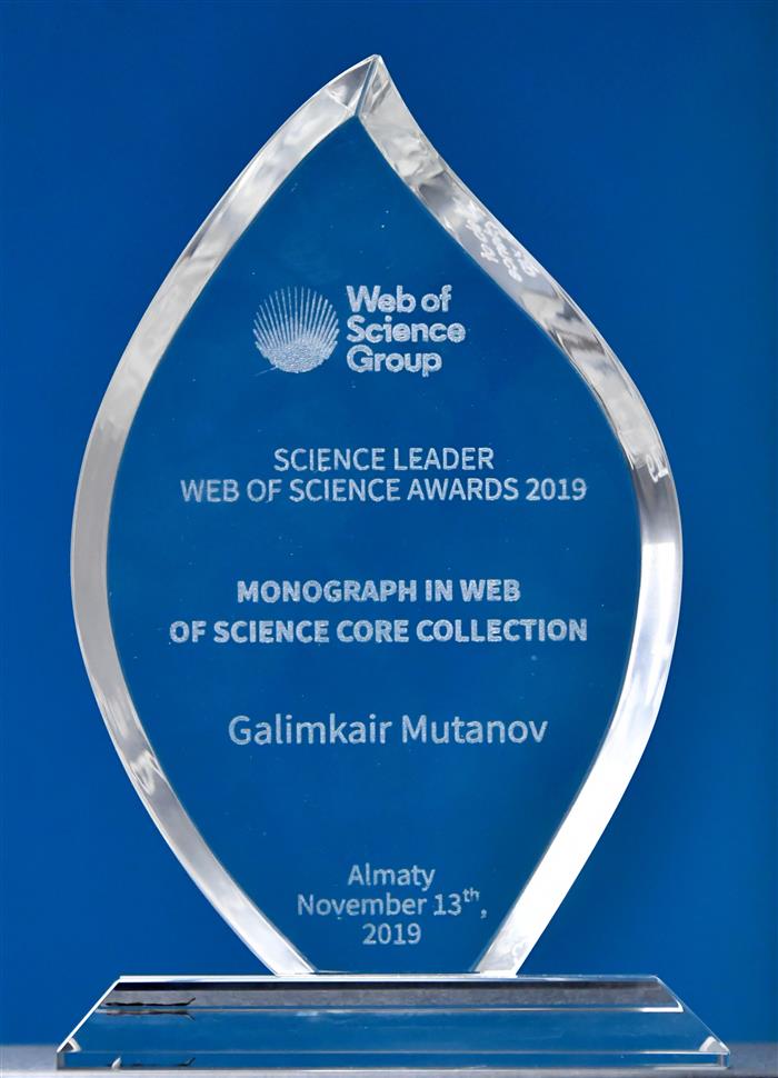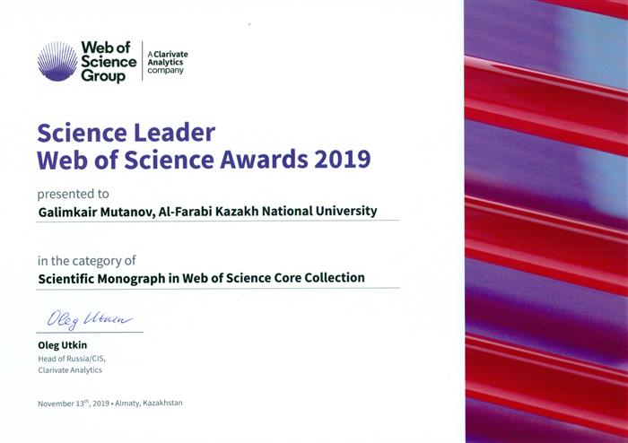 ҚазҰУ ректоры Ғалым Мұтанов «Ғылым көшбасшысы - Web of Science Awards-2019» халықаралық беделді сыйақыны иеленді. Тәуелсіз марапатқа ол «Web of Science Core Collection» ғылыми жұмыстар дәйексөздері мәліметтерінің әлемдегі жетекші базасына енетін ғылыми монографияның авторы ретінде ие болды.